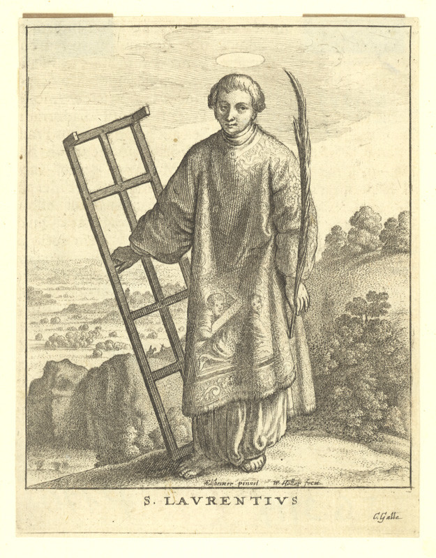 Svatý Vavřinec, podle Adama Elsheimera Autor: Václav Hollar Sbírka: Mytologie, bajky a náboženské motivy Materiál: Papír Technika: Lept Datace: 17. století Inventární číslo: IG 3119Rozměry: 104 x 87 mm Zpět na výpis